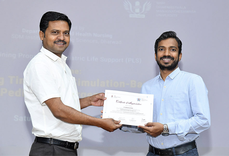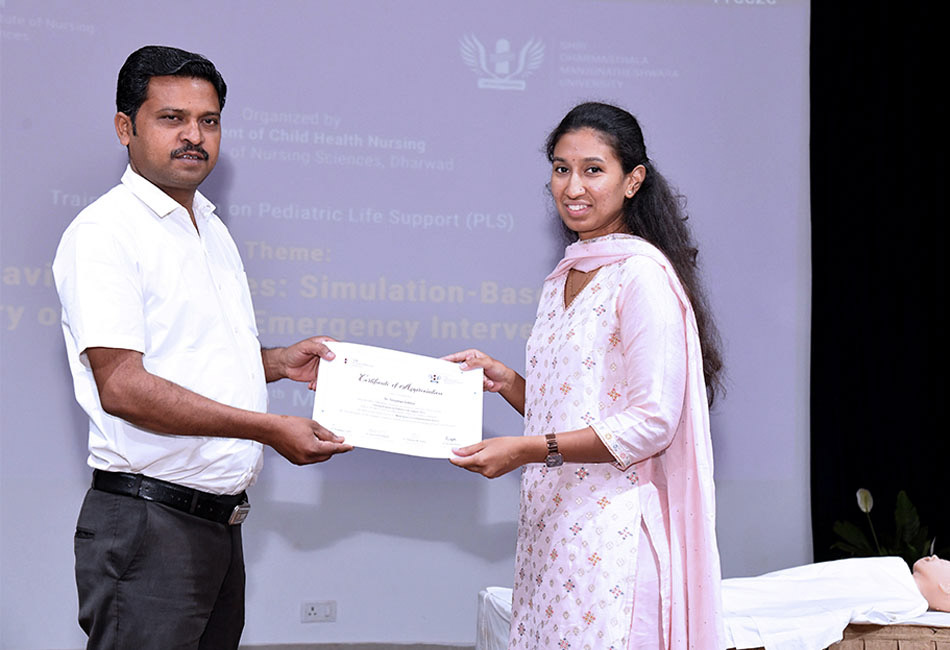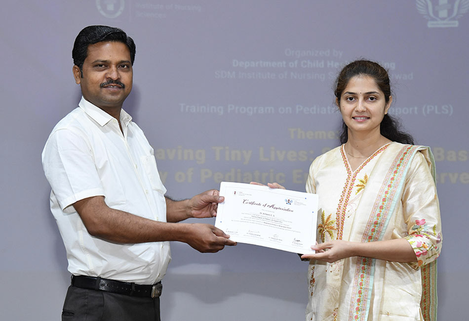 The Department of Child Health Nursing, SDM Institute of Nursing Sciences (SDMINS), Dharwad, successfully organized a Training Program on Pediatric Life Support (PLS) on 28th March 2026 at the Ishaavaasyam Auditorium & Skill Laboratory.
