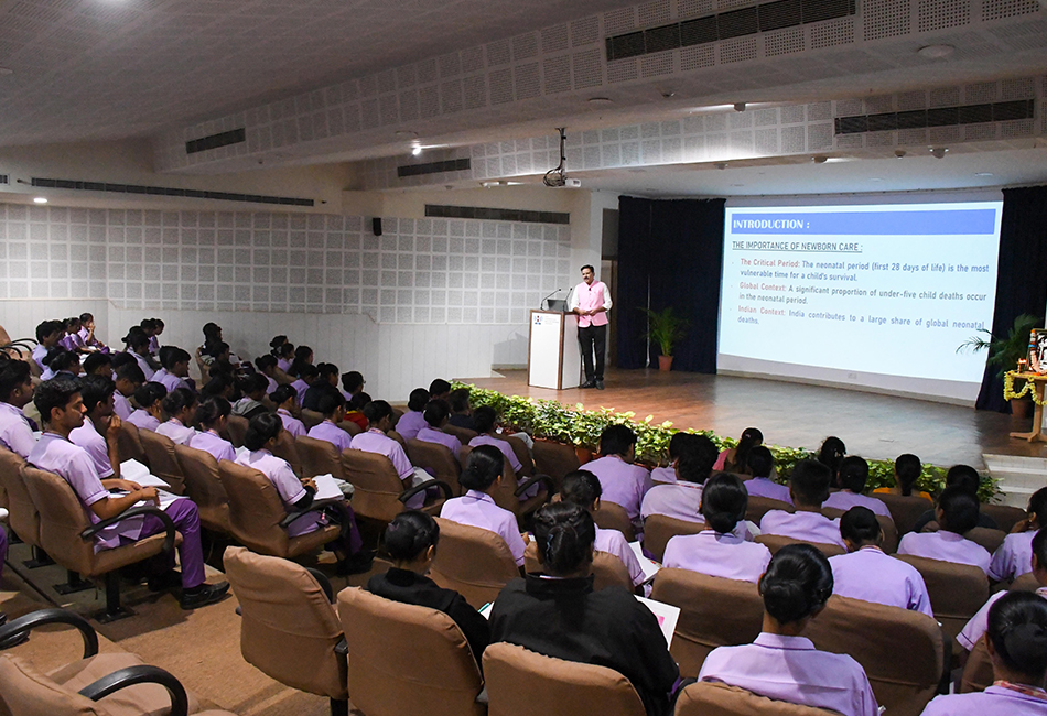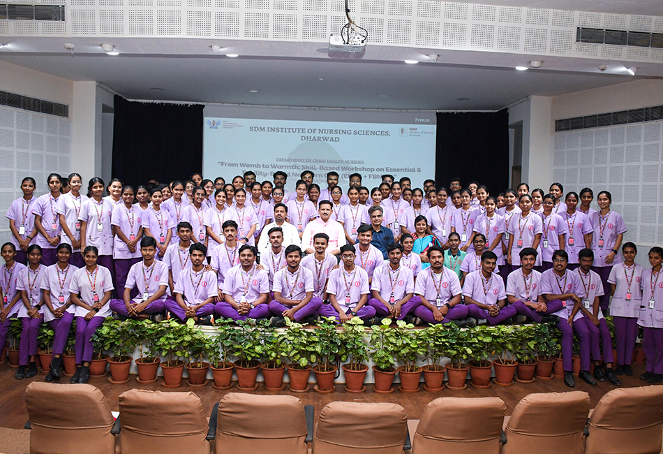 The SDM Institute of Nursing Sciences, Dharwad, proudly hosted a high-impact Skill-Based Workshop on Essential & Facility-Based Newborn Care (ENBC + FBNBC) on 6th December 2025 at the Ishaavaasyam Auditorium & Skill Laboratory. The workshop aimed to strengthen participants’ competencies in neonatal resuscitation, thermal protection, feeding techniques, Kangaroo Mother Care, infection control, and NICU documentation.